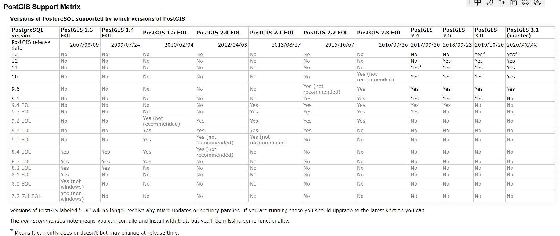 Postgre postgis 版本关系