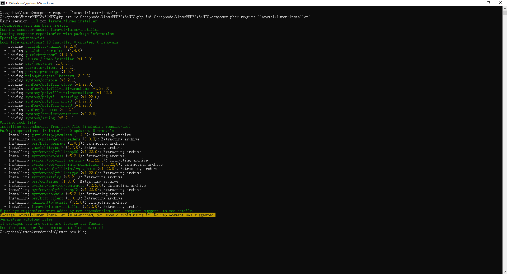 2. vendor\bin\lumen new blog
